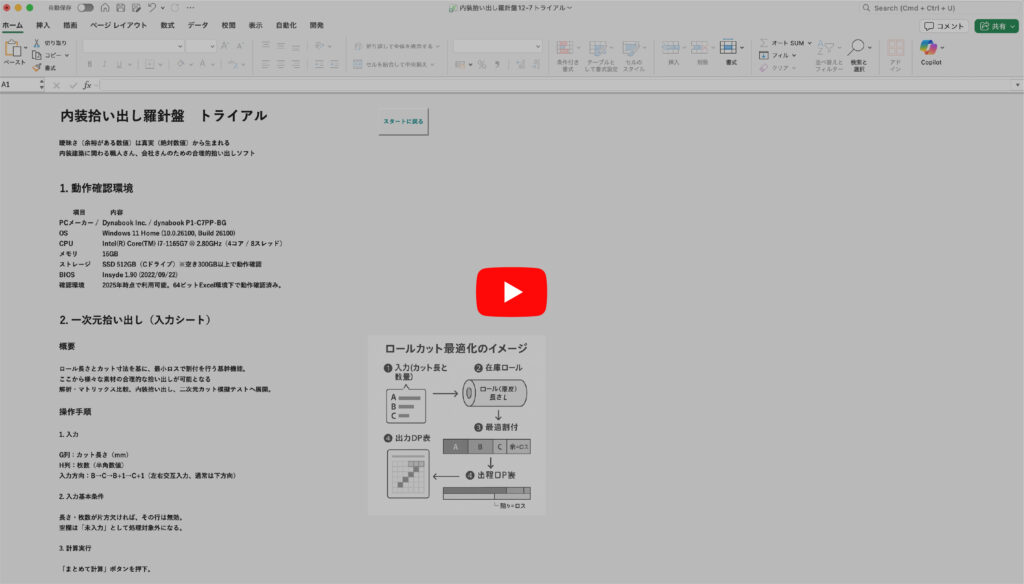 本ソフトは、建築や内装工事で欠かせない「拾い出し」作業を、誰でも簡単にできるように作られたExcelツールです。
